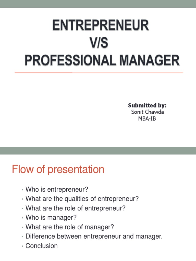 Contrast Between Entrepreneur V S Manager Edp Authorstream