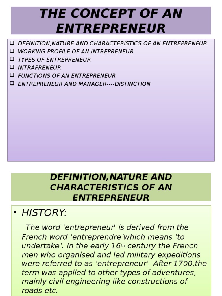 Ppt The Concept Of An Entrepreneur Definition Nature An Powerpoint