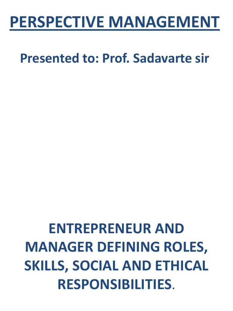Perspective Mgmt Entrepreneur And Manager Defining Roles Skills