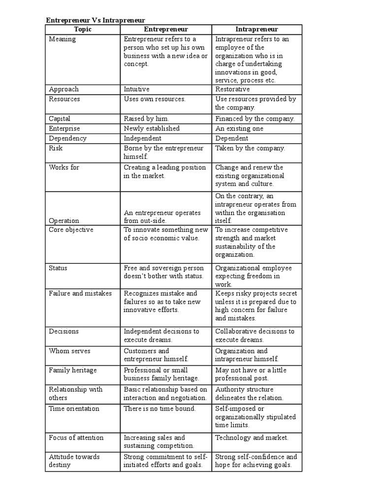 Differences Between Entrepreneur And Intrapreneur Assignment Point