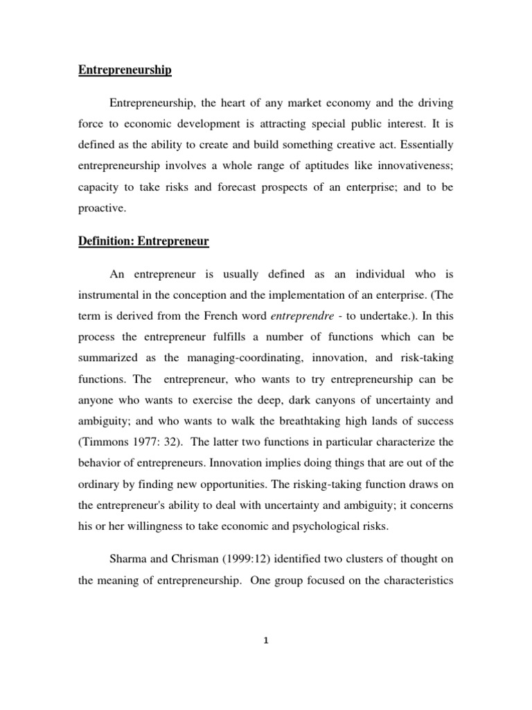 Entrepreneurship Introduction Definitions Traits And
