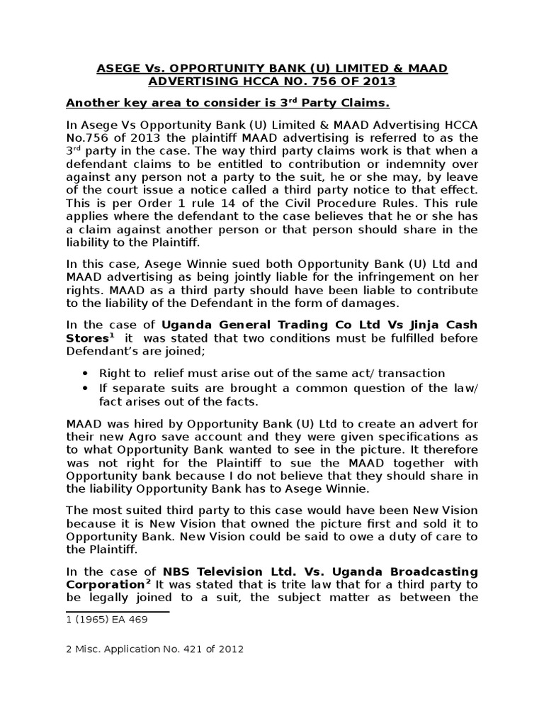 Asege Vs Opportunity Bank U Limited Maad Advertising Docx Lawsuit Damages Free 30 Day Trial Scribd