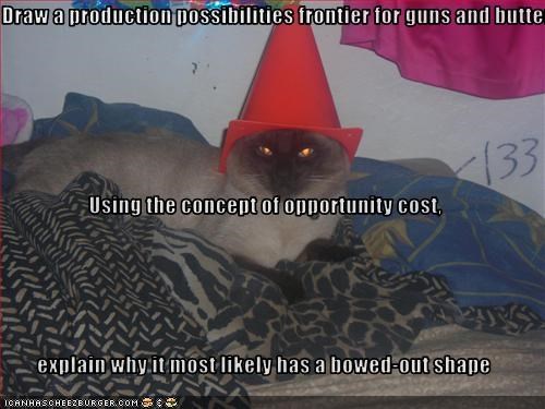 Draw A Production Possibilities Frontier For Guns And Butter Using The Concept Of Opportunity Cost Explain Why It Most Likely Has A Bowed Out Shape Cheezburger Funny Memes Funny Pictures