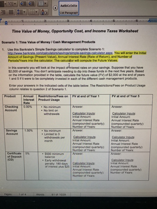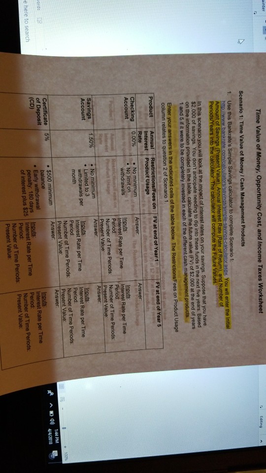 Tondra Russell Fp 100 Week2timeincome Taxesworksheet Docx Time Value Of Money Opportunity Cost And Income Taxes Worksheet Scenario 1 Time Value Of Course Hero