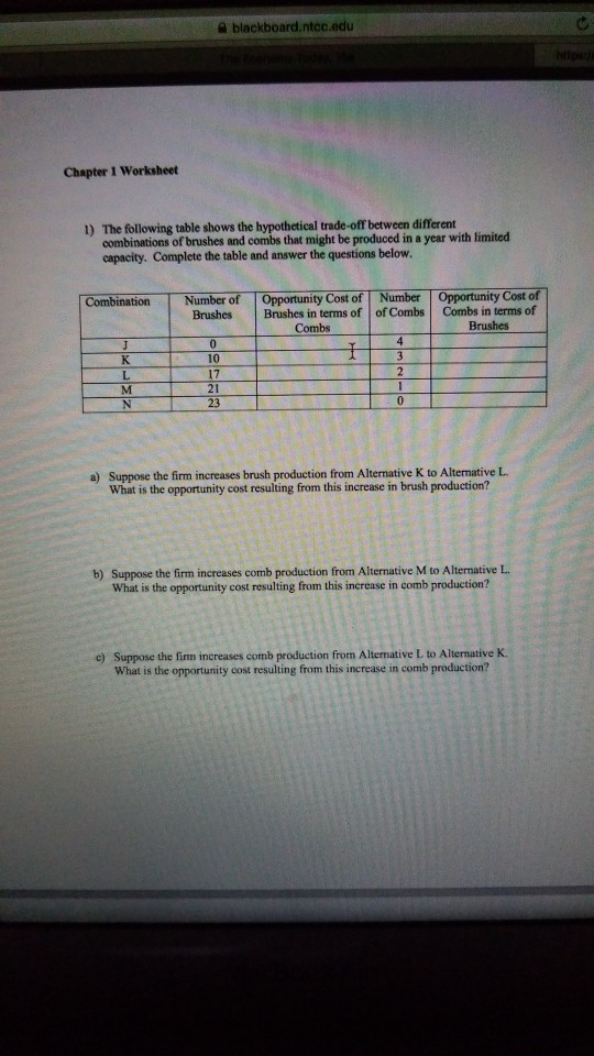 Solved Blackboard Ntce Edu Chapter 1 Worksheet The Foll Chegg Com