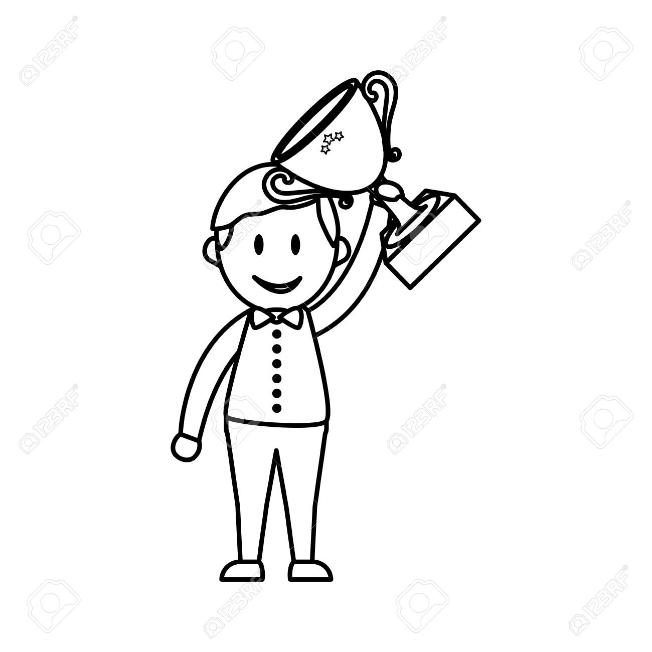Cold Gradient Line Drawing Of A Happy Cartoon Boy Affiliate