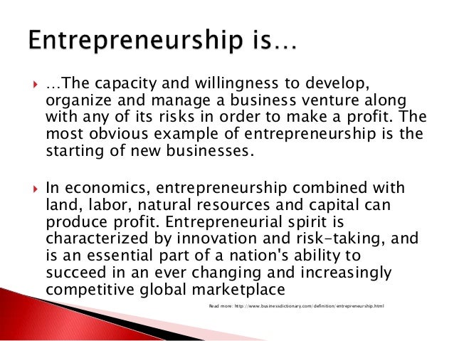 They are necessary factors of production but they are not sufficient for economic growth. It involves discovering new ideas and implementing it in business. The capacity and willingness to develop organize and manage a business venture along with any of its risks in order to make a profit.