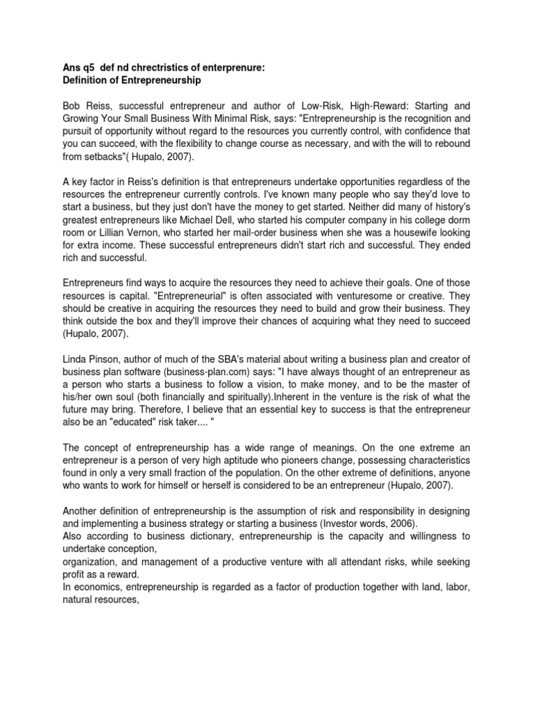 Entrepreneur And Entrepreneurship Definition