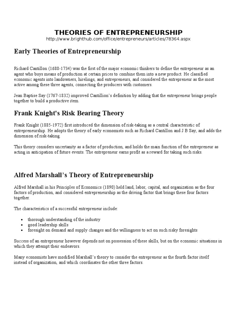 Theories Of Entrepreneurship Entrepreneurship Innovation