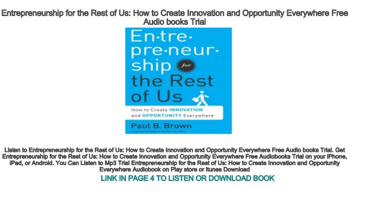 Entrepreneurship For The Rest Of Us How To Create Innovation And Opportunity Everywhere Brown Paul B 9781629560557 Amazon Com Books