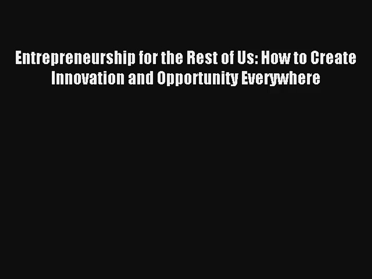 Entrepreneurship For The Rest Of Us How To Create Innovation And Opportunity Everywhere Free Video Dailymotion